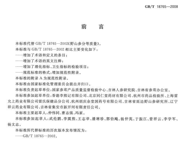 野山参鉴定及分等质量GBT18765-2008